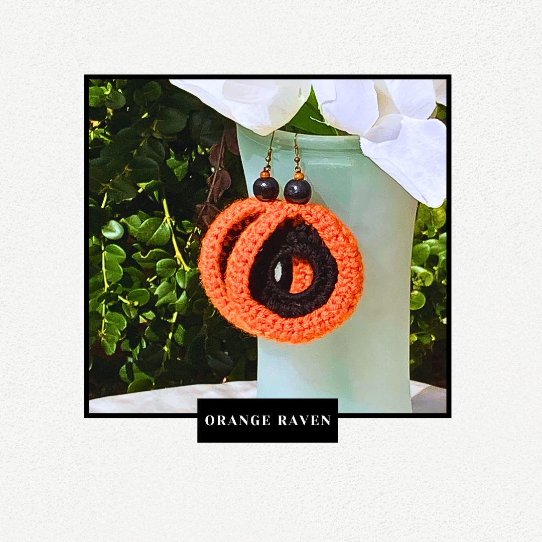 Orange and black FUN Halloween themed crochet earrings (acrylic yarn) accented with black round shaped polished wood bead. The crocheted earring is approximately 2 1/2 inches in diameter. Be the only one with these unique Halloween fashion earrings to compliment your costume at the party!!! Don't be AFRAID to be BOLD!